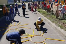 В рамках недели "Детство - это ты и я" с воспитанниками подготовительной группы было проведено итоговое мероприятие "Праздник детства". Ребята соревновались в командных играх: "Кенгуру", "Передай мяч поверху", "Перепрыгни через болото", отгадывали загадки про сказочных героев, из обруча и гимнастических палок составили солнышко. Играли в любимую народную игру "Чума урдэк, чума каз". Завершились веселые игры рисованием на асфальте цветными мелками. -