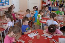 С целью закрепления и систематизирования знания детей о времени года и её приметы, творческих способностей, сегодня в средней группе было проведено нетрадиционное рисование по теме "Весенний лес".Дети используя различные техники рисования(тычком, жатой бумагой) создавали сюжетные композиции.