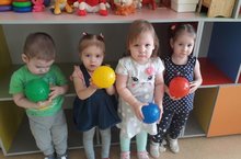 Дети ясельной группы очень любят играть с мячиками. В ходе игры дети учатся узнавать и называть цвета и форму предметов.