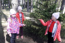 Урманда балалар бик кызыксынып кырмыскаларны күзәттеләр. ( Тәрбияче Шарипова Ф.М).