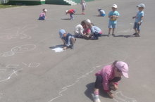 «Разноцветными мелками на асфальте мы рисуем» 25.06.2019 Цель: отразить окружающий мир ребенка в своих рисунках. Рисование на асфальте – это очень увлекательное занятие во время прогулки. А еще это познание детьми окружающего мира и творчество. Рисование мелом на асфальте развивает воображение, внимание, мышление, мелкую моторику,творческие способности, а самое главное, создает хорошее настроение, радость от собственных «шедевров». При рисовании асфальтными мелками дети испытывают совсем другие ощущения, чем при работе с карандашом и кисточкой на бумаге. Какой рисунок,в конце концов,появится на асфальте,совсем неважно,важен сам процесс рисования,он доставляет детям огромное удовольствие. Рисовать идем с мелками! Убедитесь в этом сами: И рисуем на асфальте, Не в тетрадке, не на парте! Все художники - поверьте, А рисуют на асфальте - дети! (Воспитатель Шакирова Э.А., средняя группа)