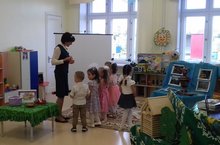 Балалар бакчалары тәрбиячеләре өчен оештырылган семинарда зурлар төркеме балалары Абдулла Алишның “Сертотмас үрдәк” әкиятендә кунакта дигән эшчәнлек күрсәттеләр. Максат:Тирә-юньне танып белүдә кызыксыну уяту; хәтерләрен үстерү. Бурычлар: Әкиятләр, табышмаклар белән кызыксынуларын арттыру. Балаларның коммуникатив сыйфатларын, диалогик сөйләм телен камилләштерү, логик фикерләүләрен үстерү. Тирә-юньдәгеләр кыен хәлдә калганын күрә белергә, ярдәмгә килергә өйрәтү. Хайваннарга, үсемлекләргә карата сак караш, мәхәббәт тәрбияләү. (Тәрбияче Хайрутдинова Г.М.) -
