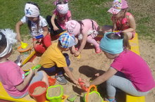 "Игры с песком". 29.05.2019 Игра с песком как способ развития и самотерапии ребенка известен с древних времен. Дети очень любят трогать песок, копаться в нем руками, лопаткой, палочкой. Вставлять в него веточки, палочки, камушки, листики, и конечно же лепить куличики. Игра с песком — это естественная и доступная для каждого ребенка форма деятельности. Ребенок часто словами не может выразить свои переживания, страхи, и тут ему на помощь приходят игры с песком.Проигрывая взволновавшие его ситуации с помощью игрушечных фигурок, создавая картину собственного мира из песка, ребенок освобождается от напряжения. А самое главное — он приобретает бесценный опыт символического разрешения множества жизненных ситуаций, ведь в настоящей сказке все заканчивается хорошо! (воспитатель Шакирова Э.А.)
