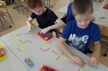 Мәктәпкә әзерлек төркемендә санау таякчыклары ярдәмендә логик мәсьәләләр чишү алымы киң кулланыла. Бу эшчәнлектә бала җавабы дөрес күрсәтелмәгән мисалны бер таякчыкның урынын алмаштыру юлы белән дөрес җавапны табарга тиеш. Бу бик зур игътибар һәм белем сорый торган алымнар берсе булса да балалар бик теләп шөгылләнәләр. Үзләре дә уйлап мисаллар эшлиләр. ( Тәрбияче Шарипова Ф.М).