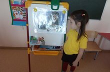 Бүген, уртанчылар төркеме балалары сөйләм үстерү шөгылендә "Эт көчекләре" картинасы буенча тасвирлама хикәя төзергә өйрәнделәр. (Сайфутдинова Г.З.).