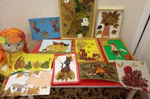 Цель: учить детей располагать детали на листе бумаги; упражнять в наклеивании сухих листьев; стимулировать детей к творческому выбору элементов. (Сайфутдинова Г.З.).