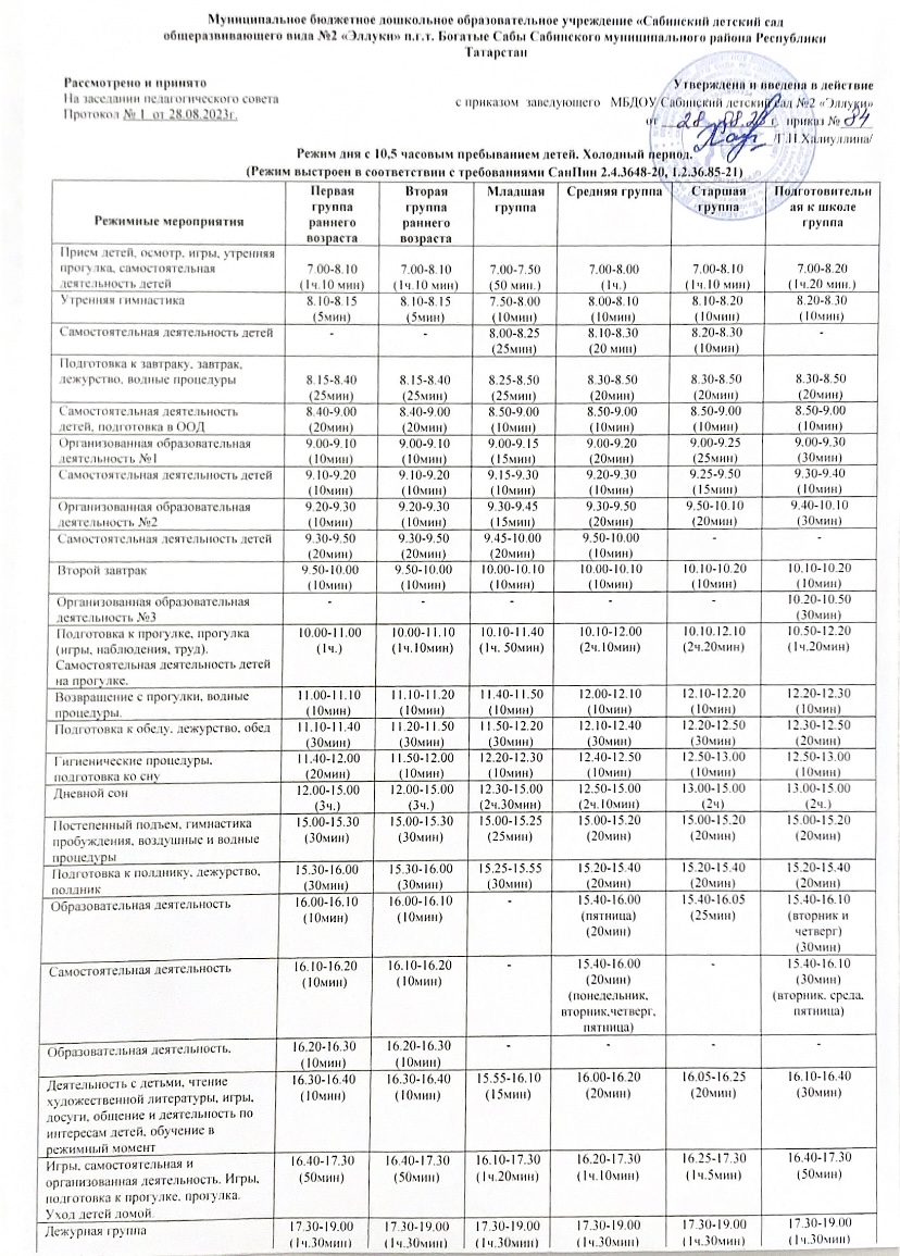 Режим пребывания детей в ДОУ на 2023-2024 учебный год (холодный период)