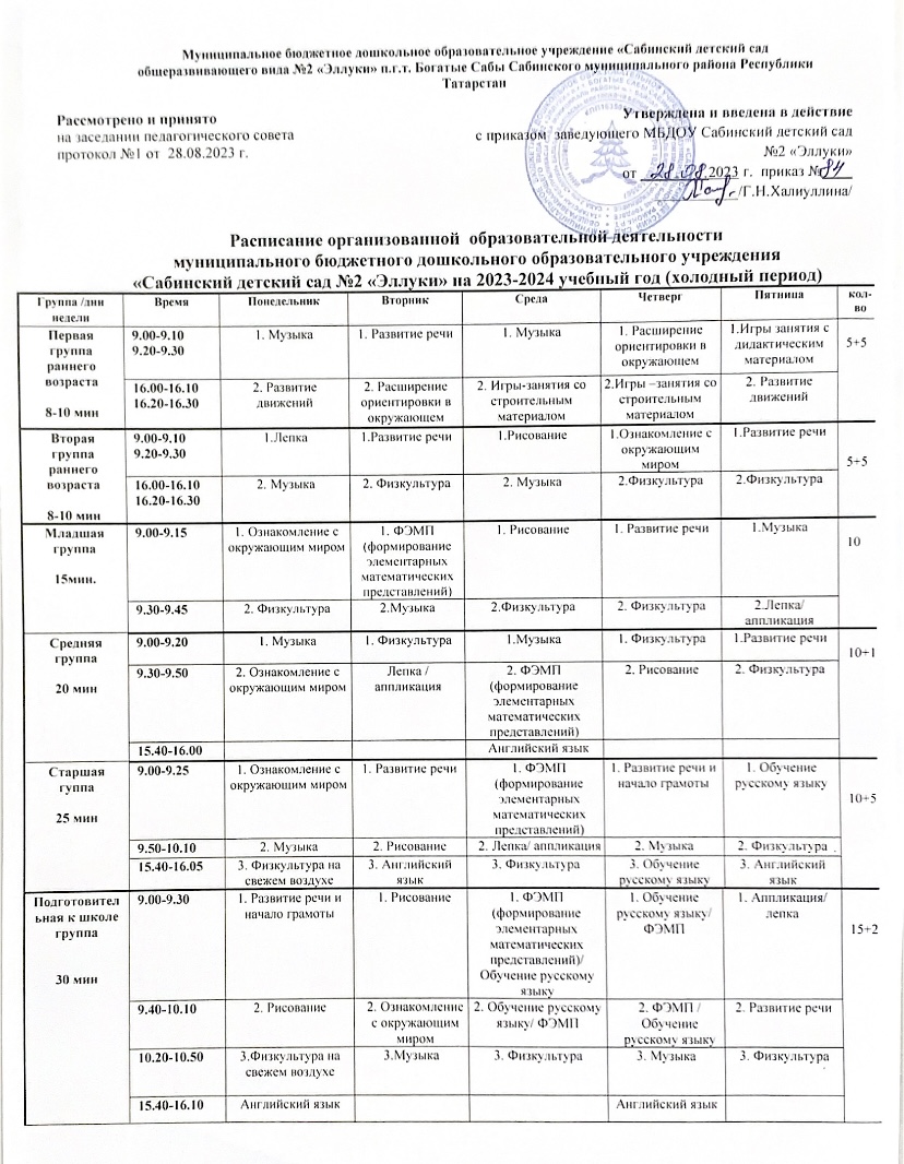 Расписание организованной образовательной деятельности на 2023-2024 учебный год
