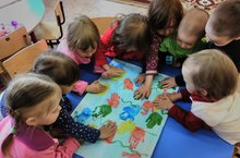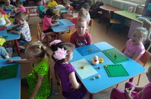 Бүген 1 нче кечкенәләр төркеме балаларын,тәрбиячеләре Габбасова Л.Р диңгез белән таныштырды(диңгез зәңгәр , анда дулкыннар бар, диңгездә балыклар яши) учлар һәм пумала б/н дөрес итеп эш итәргә : пумаланы тотарга , җиңел, салмак хәрәкәтләр б/н сызыклар сызарга-дулкыннар ясарга өйрәтте, кәгазь битендә ориентлашып,күмәк эшләргә кызыксыну тәрбияләде .Балалар бик кызыксынып балык ясадылар