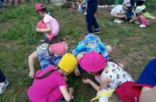 Икенче кечкенәләр төркеме балалары саф һавага чыккач яңгыр суалчанын күзәттеләр. Алар “Иң тырыш җир сөрүчеләр” икәнен белделәр. Аның бердәнбер хәрәкәтләнү чарасы-шуышу икәненә төшенделәр. “Суалчаннар, кояш һәм яңгыр” дигән хәрәркәтле уен уйнагач, балаларның күңелләре тагы да күтәрелеп китте.