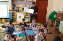 Буген зурлар төркеме балалары янына кунакка Акбай килде. Ул балаларга узе белән геометрик фигуралар алып килгән.Балалар тәрбияче апалары (Хамидуллина Р.Р.) белэн түгәрәкләрне 4 тигез өлешкә бүләргә , түгәрәкнен өлешләрен әйтергә һәм бөтен белэн өлешне чагыштырырга өйрәнделәр. Өчпочмак һәм дүртпочмак турында күзаллауларын киңәйттелэр.Бүгенге эшчәнлек барышы балаларга бик ошады.