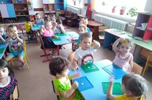 Бүген икенче кечкенәләр төркеме балалары математика шөгылендә (тәрбиячеләре Хазиева А.Х б/н) озын, кыска, бер тигез төшенчәләрен өйрәнделәр. Алар үзләренең шарфларын чагыштырып, кайсы озын, кайсы кыска икәнен белделәр. Ахырдан шарфлардан түгәрәк-кош оялары ясап “Кошлар ояда” дигән хәрәкәтле уен уйнадылар.