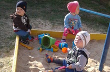 Бакчабызның иң нәни балалары ясле төркем бүлмәсендә генә түгел, участокта да уйнарга бик ярата. Тирә-юньне күзәтә-күзәтә уенчык сайлый алар. Комны иләк аша иләү ,кечкенә көрәк белән тау өю бигрәк тә ошый үзләренә.