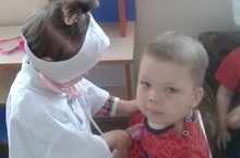 Икенче кечкенәләр төркеме балалары, тәрбиячеләре Хазиева А.Х. белән төрле уеннар уйныйлар. Аеруча алар сюжетлы-рольле уеннарга өстенлек бирәләр. “Шифаханә”, “Кибет”, “Чәчтараш”... Уеннар барышында балалар бер-берсе белән уртак сүзне тиз табалар. 2-3 кешедән торган сюжетларда үзара бердәм эш итәргә өйрәнәләр.