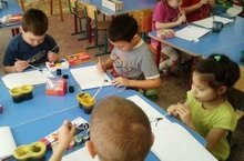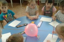 Бүген беренче кечкенәләр төркеме балалары тәрбиячеләре Хазиева А.Г. белән рәсем шөгылендә кулларын төсле карандаш тотып вертикаль сызык ясауда күнектерделәр. Матур шарлар ясап, аларга бау "тактылар". Соңыннан үзләре ясаган шарлар белән балалар рәхәтләнеп уйнадылар.
