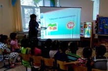 Тәрбияче Богавеева Г.Ш. зурлар төркемендә "Туган Татарстаным. Яшеллеккә күмелгән туган илем" темасы буенча ана теле шөгылен үткәрде. Шөгыльнең максаты итеп ул балаларда туган якка карата ярату хисләрен тәрбияләүне, тирә-юнь турындагы белемнәрен киңәйтү исәбенә сүз байлыгын арттыру, активлаштыру, диалогик сөйләмне үстерүне, Татарстан башкаласы Казан турындагы белемнәрен тирәнәйтүне, Татарстан символикасы һәм аның мәгънәсе белән таныштыруны алды. Балалар белән слайдлар һәм рәсемнәр каралды, Татарстан картасы өйрәнелде. "Туган җирем-Татарстан" җыры да тыңланды.