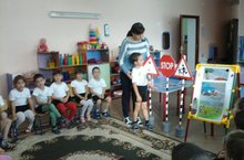 Буген зурлар төркеме балалары кабаттан юл йөрү кагыйдәләрен искә төшерделәр. Тәрбияче Хамидуллина Р.Р. аларны уен аша юл инспекторы хезмәте белән таныштырды, юл аша светофорның төрләренә, машиналарның юнәлешенә игътибар итәргә кирәк икәненә исләренә төшерде.