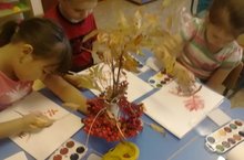Тәрәзәгә күз салсаң, бөтен табигатьне пумала белән сарылы-кызыллы төскә буяп киткәннәр төсле. Бүген мәктәпкә әзерлек төркеме балалары тәрбияче апалары Шамсутдинова Л.М. белән рәсем шөгылендә нәкъ табигатьтәгечә итеп, миләш ботагы ясадылар. Башта миләш ботагының җимешләренең сүрәтләү тәртибен, аннары төсен карадылар. соңыннан рәсемгә төшерү алдыннан альбом битенең кайсы өлешендә урнашачагын билгеләп, чып-чын миләш ботагын рәсемләделәр. Пумала белән ясауның төрле алымнары кулланылды. Шөгыль балаларга бик ошады.