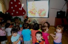 "Көз күчтәнәчләре" атналыгы кысаларында бакчабызда бик кызык белем бирү эшчәнлекләре үтә. Музыка җитәкчесе Галимуллина А.Р. да балаларны кызыктырыр өчен шөгыльләрендә яңа инновацион технологияләр куллана.