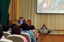 На секционном заседании воспитателей района воспитатель по обучению русскому языку Мавлявиева Л.Р. выступила с докладом на тему " Инновационные технологии в обучении дошкольников русскому языку" и показала мастер-класс использования методического пособия "Разноцветная семейка"