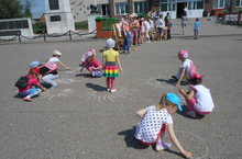 Җәйнең беренче көне- балачак иленең иң матур бәйрәме. Шуңа күрә дә балалар бу көнне зур түземсезлек белән көтеп ала. 1 июнь -балаларны яклау көне уңаеннан бүген бездә бәйрәм чарасы үткәрелде, бу бәйрәмгә Саба телерадиокомпаниясе журналистлары да чакырылган иде. Кунакка Смешинка исемле клоун килде. Ул балаларга җәй турында табышмаклар алып килгән иде, дөрес җаваплар алгач балаларга шарлар бүләк итте.Балалар Смешинкага шигырьләр сөйләделәр, җырладылар, биеделәр. Клоун бәйрәмне ошатуын әйтте һәм иртәгесен төсле меллар алып килеп бергәләп асфальтта рәсем ясарга тәкъдим итте. Балалар бик теләп риза булдылар.