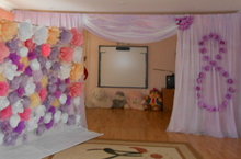 Бүгеннән бакчабызда бәйрәмнәр башлана, залыбызны бәйрәмгә матур итеп бизәдек!Март аенда, кар өстендә,кояш нурлар уята -Яз килэ каршы алыгыз -Дигән хәбәр тарата.Без беләбез, җылы язныңИң беренче бәйрәме -Әниләр, әби-апаларХатын кызлар бәйрәме!