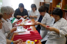 Бакчабызда бөек шагыйребез Муса Җәлилнең туган көне уңаеннан уздырылачак бәйрәм иртәсенә әзерлек эшләре бара. Рус теле тәрбиячесе Мавлявиева Ләйсән Альфакаровна педагогларга ромашка чәчәкләрен кәгазьдән ясау буенча мастер-класс күрсәтте.