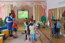 Неделя, посвященная безопасности на дорогах в средней, старшей и подготовительной группах началась с веселого путешествия в страну "Светофорию". Музыкальный руководитель Галимуллина А.Р. используя смарт доску подготовила для детей увлекательную презентацию. В путешествие дети отправились на автобусе, в дороге их поджидали интересные остановки, такие как "Загадкино", "Танцевальная", "Дорожные знаки", "Песенная", "Игровая". Дети с удовольствием отгадывали загадки про дорожные знаки, показывали свои знания, пели, танцевали и играли. Путешествие прошло очень увлекательно.