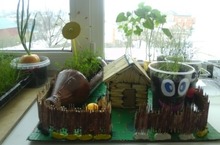Зурлар төркеме балаларының тәрәзә төбендәге яшелчәләре паровозга төялеп китеп бара, ә өйләре тирәсендәге кыярлары инде шактый зур үскән, чөнки аларны балалар үзләре карап, сулар сибеп үстерәләр. Тиздән кыярлар ашый башлыйбыз, чәчәккә бөреләнгәннәр инде дип сөенә алар. Яшел үсентеләр белән ташбаканы, попугайны да сыйлаганнар алар. Тырышлыклары файдалы булуына балалар бик сөенәләр. Һәрвакыт тырыш булыгыз, балалар! Күргәзмәне эчтәлекле итеп оештырган өчен тәрбияче Хазиева Алсу Габделхамитовна һәм Мавлявиева Ләйсән Альфакаровнага бакча администрациясе грамотасы тапшырылды.