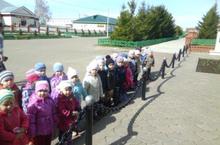 Уртанчылар һәм икенче кечкенәләр төркеме балалары мәңгелек ут янына бардылар һәм сугышчылар истәлегенә чәчәкләр куйдылар.