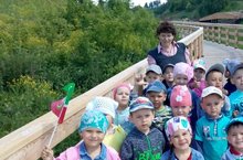Бүген зурлар төркеме балалары тәрбияче Мөхәммәтшина С. С. һәм тәрбияче ярдәмчесе Булатова Ю. белән Саба елгасына сәяхәт ясадылар. Алар үсемлекләрне, төрле матур чәчәкләрне күзәттеләр, чишмә суының чисталыгын күрделәр, елга буенда зур тракторларның нинди эш башкаруын карап тордылар.