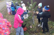 Старшая группа на прогулке наблюдала за кустами и деревьями.