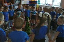 2 кечкенәләр төркемендә рәсем шөгылендә балалар чыршыны уенчыклар белән бизәделәр.Алар кышкы урманга сәяхәткә барып кайтканнан соң,яшел чыршыга уенчыклар астылар.Чыршылар бик матур булды.Шулай ук балалар чыршы әйләнәсендә "Чыршы" җырын башкардылар.