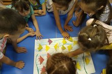 Аппликация белем бирү эшчәнлегендә мәктәпкә әзерлек төркеме балалары тәрбиячеләре Хайриева Гөләрия Таһировна белән “зур аквариумга” оригами ысулында ясалган балыклар ябыштырдылар. Коллектив эшчәнлек балаларда бер-береңә ярдәмләшү хисен ныгытты, үзара дус-тату эшләүгә этәрде.