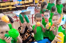 Икенче кечкенәләр төркеме балалары(тәрбиячеләре Хазиева А.Х ) атна темасы уңаеннан кызлар һәм малайлар төркеменә бүленеп, яшелчәләрнең һәм җиләк-җимешләрнең исемнәрен атадылар һәм дөрес итеп сыфатын билгеләргә өйрәнделәр. Тәрбияче сорауларына дөрес итеп, тулы җавап бирделәр.