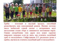 Грибы – полезный и вкусный продукт, способный разнообразить наш повседневный рацион. Именно поэтому масса любителей «тихой охоты» с нетерпением ждут наступления сезона сбора и занимаются заготовками впрок. Однако употребление этих даров леса может серьёзно навредить здоровью если не знать, как отличить съедобный гриб от несъедобного. Сайфутдинова Л.Т. рассказала детям о грибах, научила их отличать съедобный гриб от несъедобного