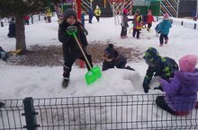 Тирә-як мохитне чисарту эшенә зурлар төркеме балалары (тәрбиячеләре Хазиева А.Х) бик актив катнаша. Алар үзләренең кечкенә көрәкләре бик теләп карны тараталар. Шулай итеп тизерәк уйнау мәйданчыкларын кардан арындыралар.