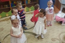 Без бүген беренче иң кечкенәләр төркеме балалары белән Җырлы-биюле уен "Буш урын" дип исемләнгән уенны уйнадык, кечкенәләргә бу уен бик охшады.