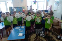 Бүген зурлар төркеме балалалары Кисеп-ябыштыру эшчәнлегендә,кар бөртекләре кистеләр. һәм алар аның үзлекләрен әйттеләр, матурлыкларына сокландылар..
