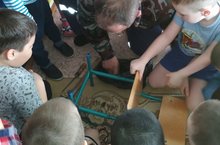 Мәктәпкә әзерлек төркеме балалары,хуҗалык эшләре өчен җаваплы,Раиль абыйлары белән ватылган урындыкны төзәттеләр.