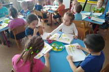 Уртанчылар төркеме балалары, бүгенге математика шөгылендә, предметларны зурлыгына карап чагыштырдылар. 5 әчендә санауны ныгыттылар. Дәфтәрләр б/н эшләгәндә "Матрёшкалар"ның сарафаннарын дөрес табып, аларны тоташтырдылар