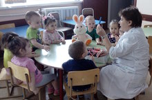 Бүген ясле төркеменә куян төсле таякчык тутырылган тартма белән кунакка килде. Балалар төсле таякчыкларны күреп сөенделәр. Төсле таякчыкларның төсләрен әйтеп үттеләр һәм алардан өйләр ясадылар. Куян белән уен уйнадылар.