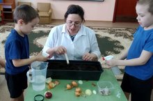 Зурлар төркеме балалары, тәрбияче Г.Г. Якупова белән берлектә, яшел кыяк өчен савтларга, сарымсак һәм суган утырттылар. Тәрәзә төбендә үсүче яшелчәләр су сибеп, чүп үләннәрен вакытында утаган очракта 2-3 атнадан сусыл, яшел суган кыягы белән сөендерер дип көтәргә генә кала.