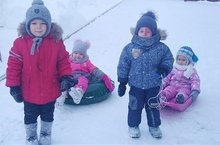 Уртанчылар төркеме балалары өйләреннән чана, салазкалар алып килеп рәхәтләнеп шуалар, берсен-берсе тартып йөриләр.