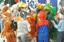 Уртанчылар төркемендә бик матур бәйрәм үтте бүген. Балаларыбыз русча "Теремок" әкиятен сәхнәләштерделәр. Кыш бабабыз Камилебезнең әтисе-Рифат кергәч бәйрәмебез тагын да ямьләнеп, күңелләнеп китте.