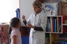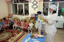 Бүген 2 нче кечкенәләр төркеменә шәфкать туташы Румия апа килде. Балалар аны килеп керүгә шунда ук танып алдылар. Ул башта үзенең һөнәре турында сөйләде,аннан авырту Алсу курчакны дәвалады. Курчакның температурасы күтәрелгән булуын белгәч,аңа укол ясады. Балалар бик кызыксынып тыңлап утырдылар.Курчакны жәлләделәр, Һәм авыртырга ярамавын аңладылар.