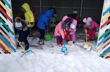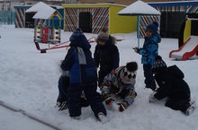 Уртанчылар төркеме балалары саф һавага чыккач, үз өсләренә йөкләнгән эшләргә бик җаваплы карыйлар һәм җиренә җиткереп башкарып чыгалар. Балалар беседканы кардан бик теләп арындырдылар.