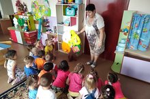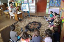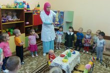 Атна темасы буенча 2нче кечкенәләр төркеме балаларын тәрбияче Мөхәммәтшина С.С. "Йомры икмәк" әкиятенең эчтәлеге белән таныштырды. Сөйләм телен үстерү максатыннан балалар әкиятне бармак театры ярдәмендә уйнап белемнәрен,сүзлек запасын баеттылар.