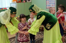 Бүген бакчабызга кунакка мәдәният йортыннан кунаклар килделәр. Балалар белән җырлы- биюле уеннар оештырдылар, әкиятләр, шигырьләр сөйләделәр.