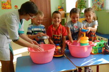 Атна дәвамында әдәплелек турында сөйләштек. Үз- ара дус уйнарга, матур сүзләр белән сөйләшергә кирәклегенә төшендек. Яраткан уенчыкларыбызны бергәләшеп юдык.